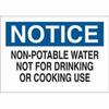 Brady Chemical and Hazardous Material Sign, Rectangle, Header: NOTICE, Language: English, Text Legend, Legend: NON-POTABLE WATER NOT FOR DRINKING OR COOKING USE, B-401 Polystyrene, Corner Hole Mounting, 10 in Height, 14 in Width, Black/Blue on White Legend/Background