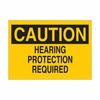 Brady Personal Protection (PPE) Sign, Rectangular, Header: CAUTION, Text Legend, Legend: HEARING PROTECTION REQUIRED, B-401 Polystyrene, Corner Hole Mounting, 10 in Height, 14 in Width, Black on Yellow Legend/Background