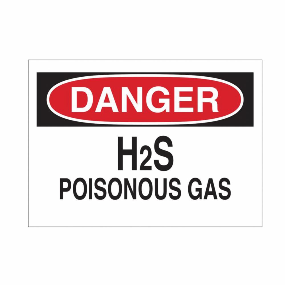 Brady Chemical and Hazardous Material Sign, Rectangle, Header: DANGER, Language: English, Text Legend, Legend: H2S POISONOUS GAS, B-401 Polystyrene, Corner Hole Mounting, 7 in Height, 10 in Width, Black/Red on White Legend/Background