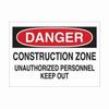 Brady Traffic Sign, Rectangular, Header: DANGER, Text Legend, Legend: CONSTRUCTION ZONE UNAUTHORIZED PERSONNEL KEEP OUT, B-401 Polystyrene, Surface Mounting, 10 in Height, 14 in Width, Black/Red on White Legend/Background