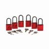 Brady ABUS Safety Lockout Padlock, Anti-Spark Open Shackle Standard Size, Different Key, Red, Anodized Aluminum Body, 1/4 in Shackle Diameter, 1-1/2 in Shackle Height, 0.8 in Shackle Width, Polished Chrome Aluminum Shackle, 1.6 in Body Length, 1-1/2 in Body Width, 6-Pin Cylindrical Locking Mechanism