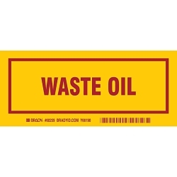Brady Hazardous Waste Label, Laminated Non-Reflective Rectangular Self-Adhesive, 7 in Width, Legend: WASTE OIL, Red on Yellow Legend/Background, B-302 Polyester, For Use With: Container, 25 per Pack Labels