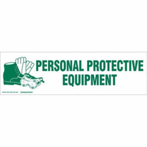 Brady Safety Label, High Performance Laminated Non-Reflective Rectangular Self-Adhesive, 24 in Width, Legend: PERSONAL PROTECTIVE EQUIPMENT, Green on White Legend/Background, B-302 Polyester, For Use With: Cabinet, 1 per Pack Labels