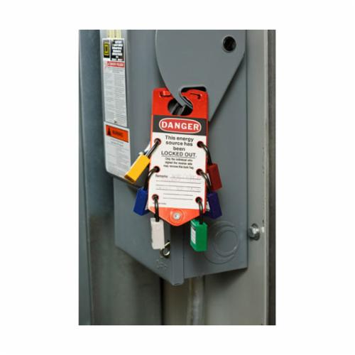 Brady 65972 Labeled Snap-In Lockout Hasp, 6 Padlocks, 5/16 in Dia Max Padlock Shackle, Aluminum