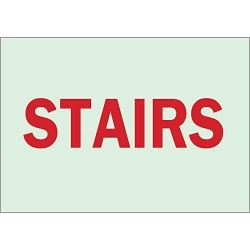 Brady BradyGlo Exit and Directional Sign, Glow-In-The-Dark High Visibility Rectangular, Header: No Header, Text Legend, Legend: STAIRS, B-347 Plastic, Corner Hole/Surface Mounting, 7 in Height, 10 in Width, Red on Glow Legend/Background