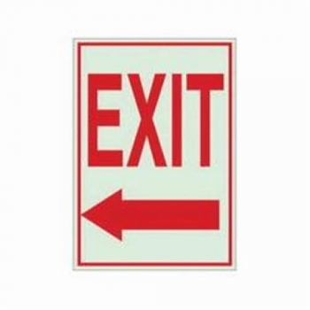 Brady BradyGlo Exit and Directional Sign, Rectangular, Symbol/Text Legend, Legend: EXIT, B-347 Polyester/Polystyrene, Corner Hole Mounting, 10 in Height, 7 in Width, Red on Glow Legend/Background