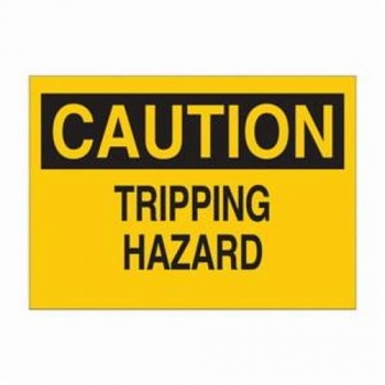 Brady Slip, Trip and Floor Obstacle Hazard Sign, Laminated Rectangular, Header: CAUTION, Text Legend, Legend: TRIPPING HAZARD, B-302 Polyester, Self-Adhesive Mounting, 7 in Height, 10 in Width, Black on Yellow Legend/Background