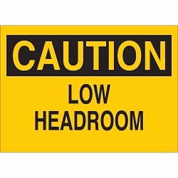 Brady Machine and Equipment Sign, Laminated Rectangular, Header: CAUTION, Text Legend, Legend: LOW HEADROOM, B-302 Polyester, Self-Adhesive Mounting, 7 in Height, 10 in Width, Black on Yellow Legend/Background