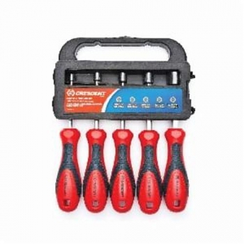 Crescent Nutdriver Set, Measurement System: Imperial, 5 Piece, 3/16 to 7/16 in Size, 6-3/4 in Overall Length, Ergonomic/Tri-Lobe Extruded Handle, Specifications Met: ASME B107.110-20123, Magnetized Tip: Yes, Polished Nickel/Polished Chrome, Specifications: 6-Point, 3 in Shaft, 1 in Dia x 3-3/4 in L Handle
