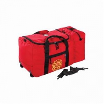 Arsenal Fire and Rescue Gear Bag, Wheeled, Series: 5005W, Red, 1000D Nylon, 7160 cu-in Storage, 14 in Height, 14 in Width, 31 in D, Abrasion and Puncture Resistance Properties, 2 Pockets, Heavy Duty #10 Zipper Closure