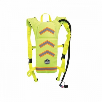Chill-Its Hydration Pack, Low Profile, Series: 5155HV, 2 L/70 oz/2.2 hr, 2 in D, 19 in Length, 11 in Width, 600D Polyester Shell/EVA Reservoir, Hi-Viz Lime, Zipper Closure