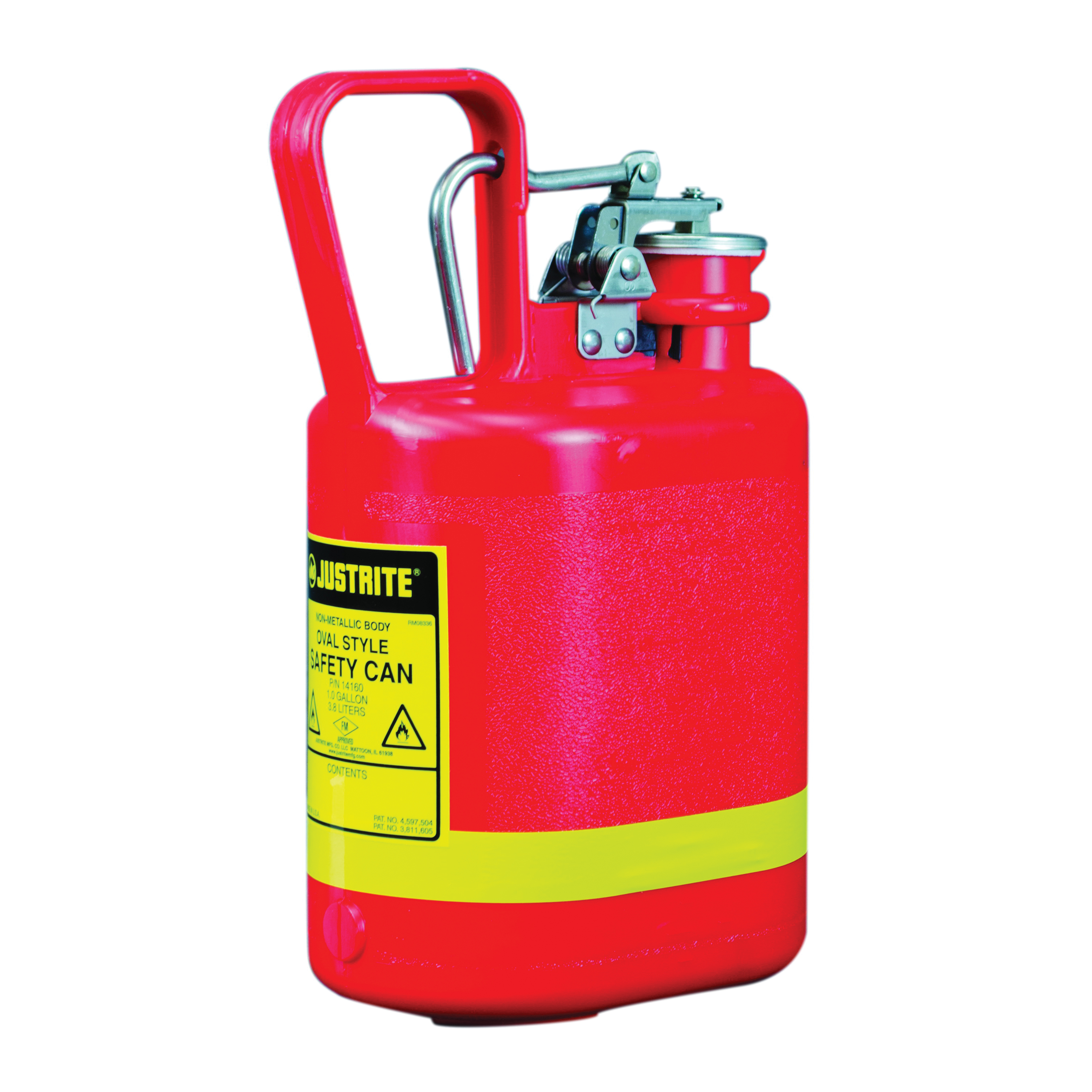 Justrite 14160 Type I Oval Safety Can With Stainless Steel Hardware, 1 gal Capacity, 12-3/4 in H, Polyethylene, Red