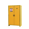Justrite 22603 Standard Flammable Safety Cabinet, 45 gal Capacity, Bar Handle, 76.65 in H x 45.83 in W x 24.41 in D, Hybrid Close Door, 2 Doors, 3 Shelves, Melamine Resin Body/Steel, Yellow
