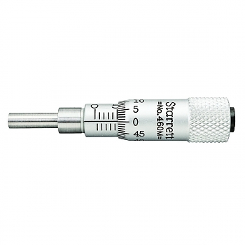 Starrett Micrometer Head, Mechanical, Series: 460MB, 0 to 13 mm, +/-0.002 mm Accuracy, Graduations: 0.01 mm, 0.01 mm Resolution, Flat Spindle, Plain Thimble, Steel, Satin Chrome, 2 in L x 13/32 in W