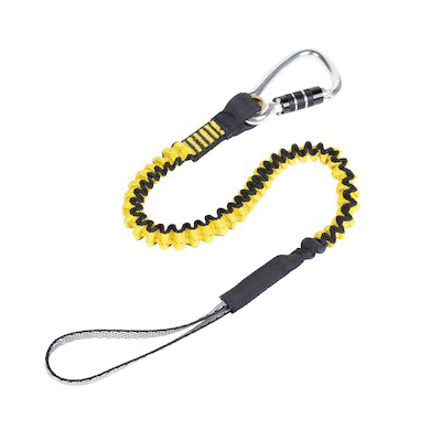 3M DBI-SALA Fall Protection, 7100209334, Lanyard, Hook to Loop Medium Duty, Series: Python Safety, M Size, 31 in Working Length, 52 in Extended Length, 35 lb Capacity, 5/8 in Overall Width, Fastening Method: Locking Carabiner, Bungee/Tubular Webbing, Yellow