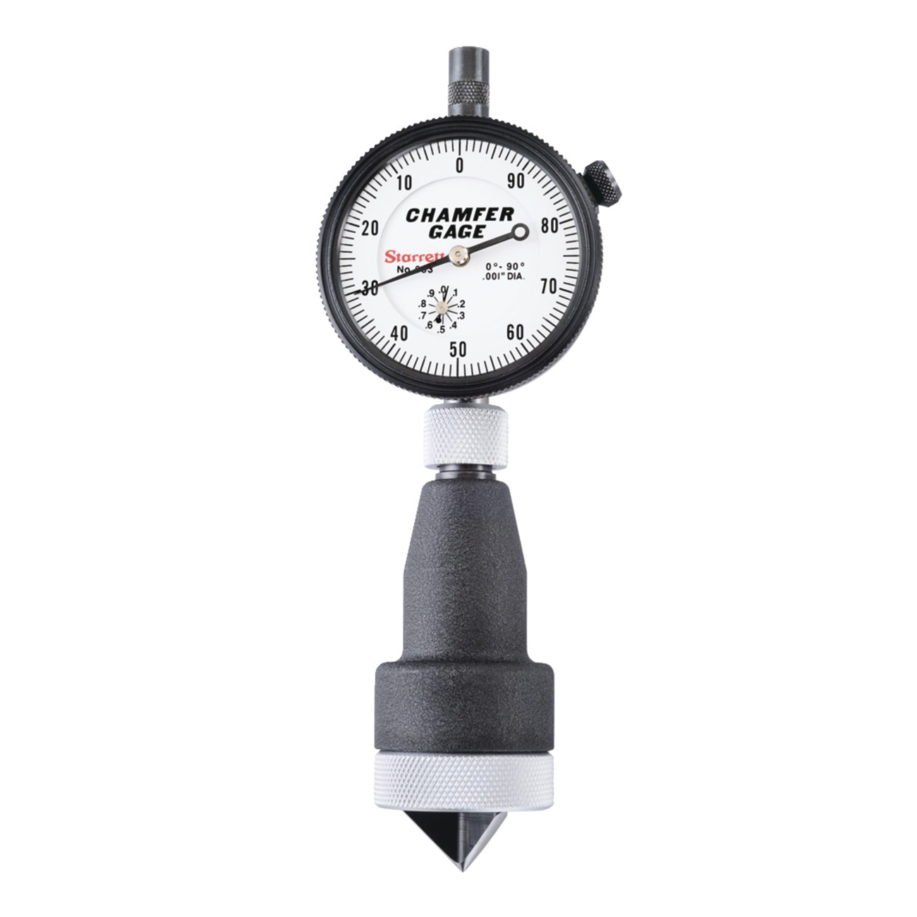 Starrett Chamfer Gage, Internal, Series: 683, 0 to 1 in Measuring, Graduations: 0.001 in, 3-Blade Plunger, 2-19/64 in Dia x 57/64 in H Dial, White Dial, Hardened Tool Steel