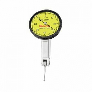 Starrett Dial Test Indicator, Series: 709M, 0.8 mm Measuring, 0 to 40 to 0 Dial Reading, Graduations: 0.01 mm, 1-3/8 in Dial, Yellow Dial, 13/16 in L Tip, 0.078 in Diameter Ball, Steel, Satin Chrome