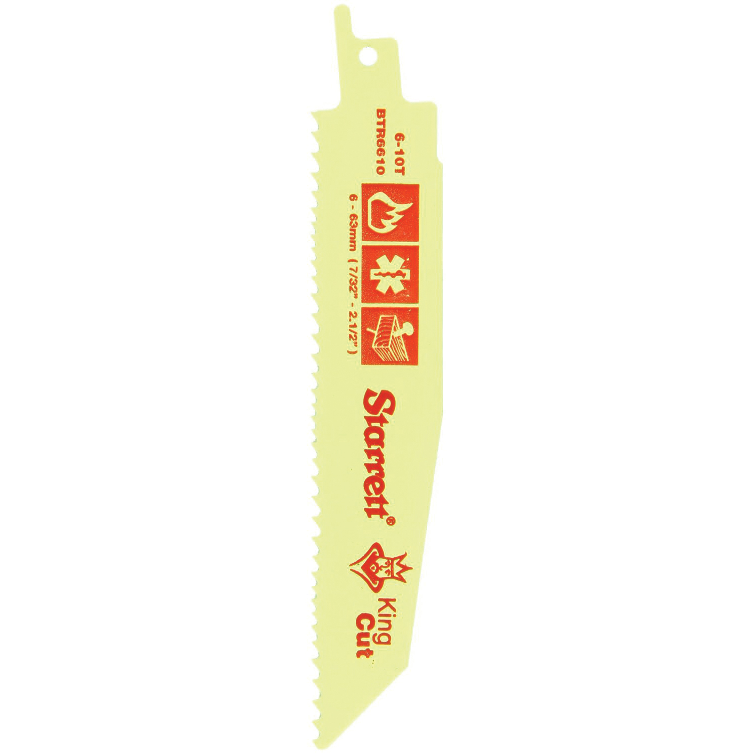 Starrett Reciprocating Saw Blade, Series: Kingcut BTR, 6 in Length, 1 in Width, 0.063 in Thickness, 6 to 10, Tapered Teeth, Bi-Metal Body