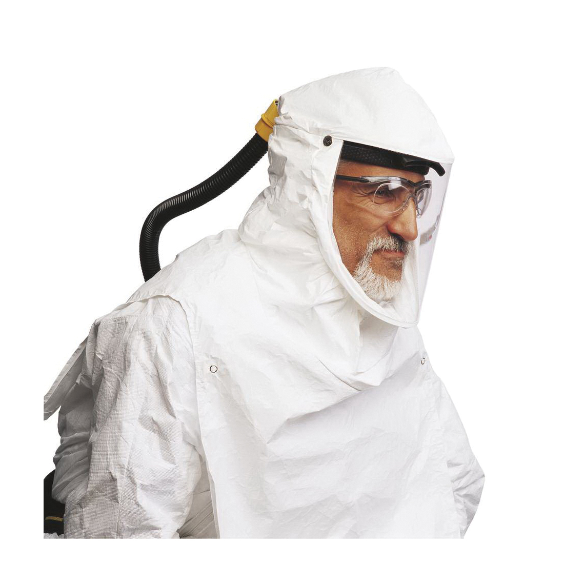 North by Honeywell Bibbed Hood Assembly, Loose-Fitting, Series: Primair 100, Universal Size, Ratchet Suspension, For Use With: Primair 100 Series Facepiece Assembly, Tychem/Tyvek QC, Polyethylene, White