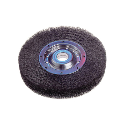 Osborn Wheel Brush, Wide Face, 6 in Brush Dia, 1-1/4 in Face Width, Arbor Hole Size 2 in, Crimped Filament/Wire, 0.006 in Filament/Wire, Carbon Steel Fill, 1 in Trim Length, 6000 rpm Maximum, Unthreaded Arbor Attachment