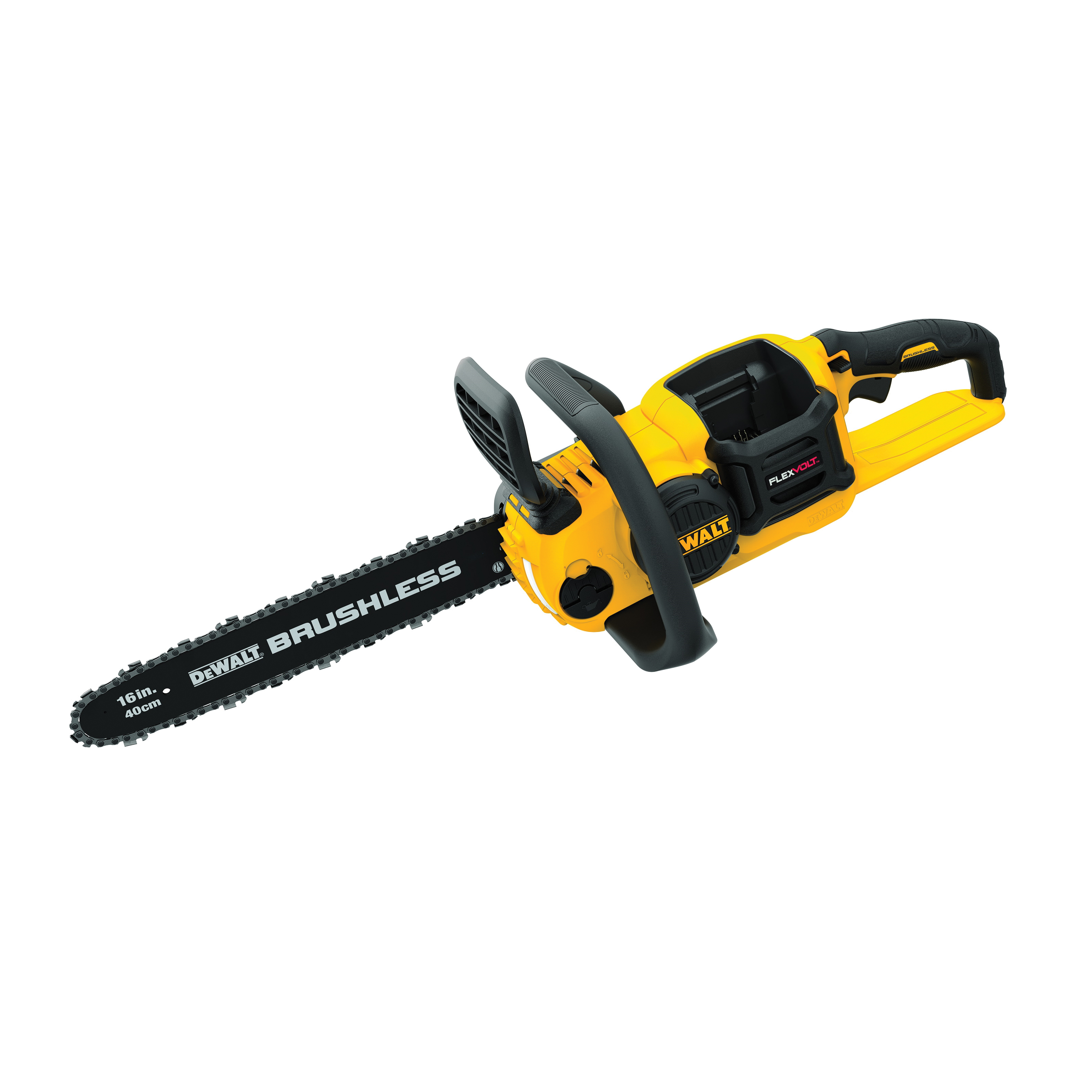 DeWALT 60V MAX* FLEXVOLT Electric Chain Saw, Brushless Cordless, Bare Tool/Kit: Kit, Cutting Capacity: 16 in, 0.043 in Bar/Chain, 16 in Bar/Chain Length, 3/8 in Pitch, 7500 rpm Speed, Automatic Bar/Chain Oiler, 60 V, Lithium-Ion Battery, Trigger Switch Control, Black/Yellow