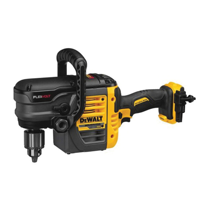 DeWALT 60V MAX* FLEXVOLT VSR Stud and Joist Drill, Brushless Cordless, 1/2 in Chuck, Keyed Chuck, 0 to 300/0 to 1250 rpm No-Load, 2 Speed, 60 V, Lithium-Ion Battery, Battery Included: Yes, Metal/Plastic Housing Material, 2-Position/Right Angle/Side Handle, Yellow Black, Trigger Switch Control, 16 in Overall Length, 6.83 in H Dimensions