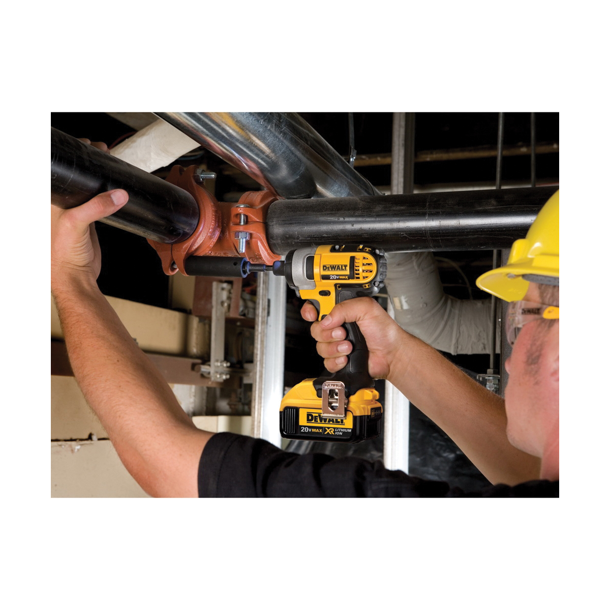 DeWALT Cordless Impact Driver Kit, Compact, Bare Tool/Kit: Kit, Hex Drive, 1/4 in Drive, 0 to 3200 bpm, 1400 in-lb Torque, 0 to 2800 rpm, 20 VAC, Lithium-Ion Battery, 4 Ah Battery, Battery Included: Yes, Pistol Grip Handle, Impact Clutch Control, 5.55 in Overall Length