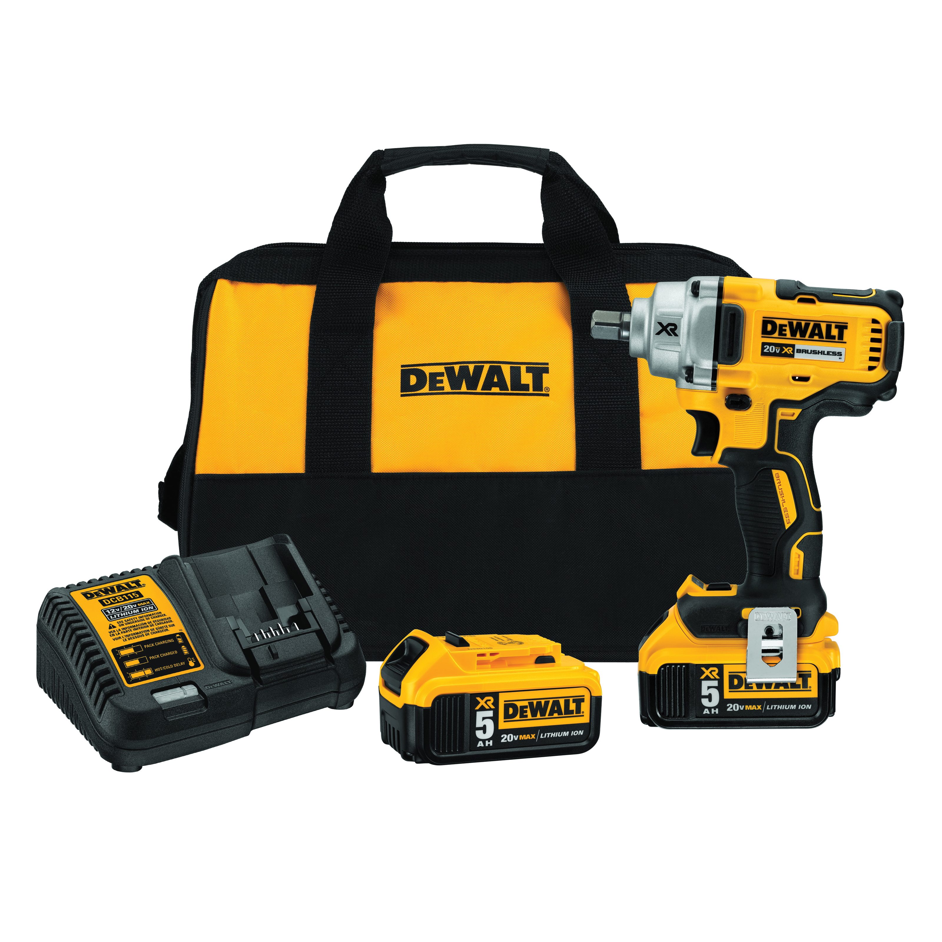 DeWALT 20V MAX* MATRIX Cordless Impact Wrench, Mid-Range, Bare Tool/Kit: Kit, Straight Drive, 1/2 in Drive, 1500 bpm Blows per Minute, 330 ft-lb Torque, 0 to 900/0 to 2000 rpm Speed, 20 VDC, Lithium-Ion Battery, 5 Ah Battery, Battery Included: Yes, Pistol Grip Handle, Variable Speed/Trigger Control, 6.95 in Overall Length, 8.25 in H x 2.85 in W