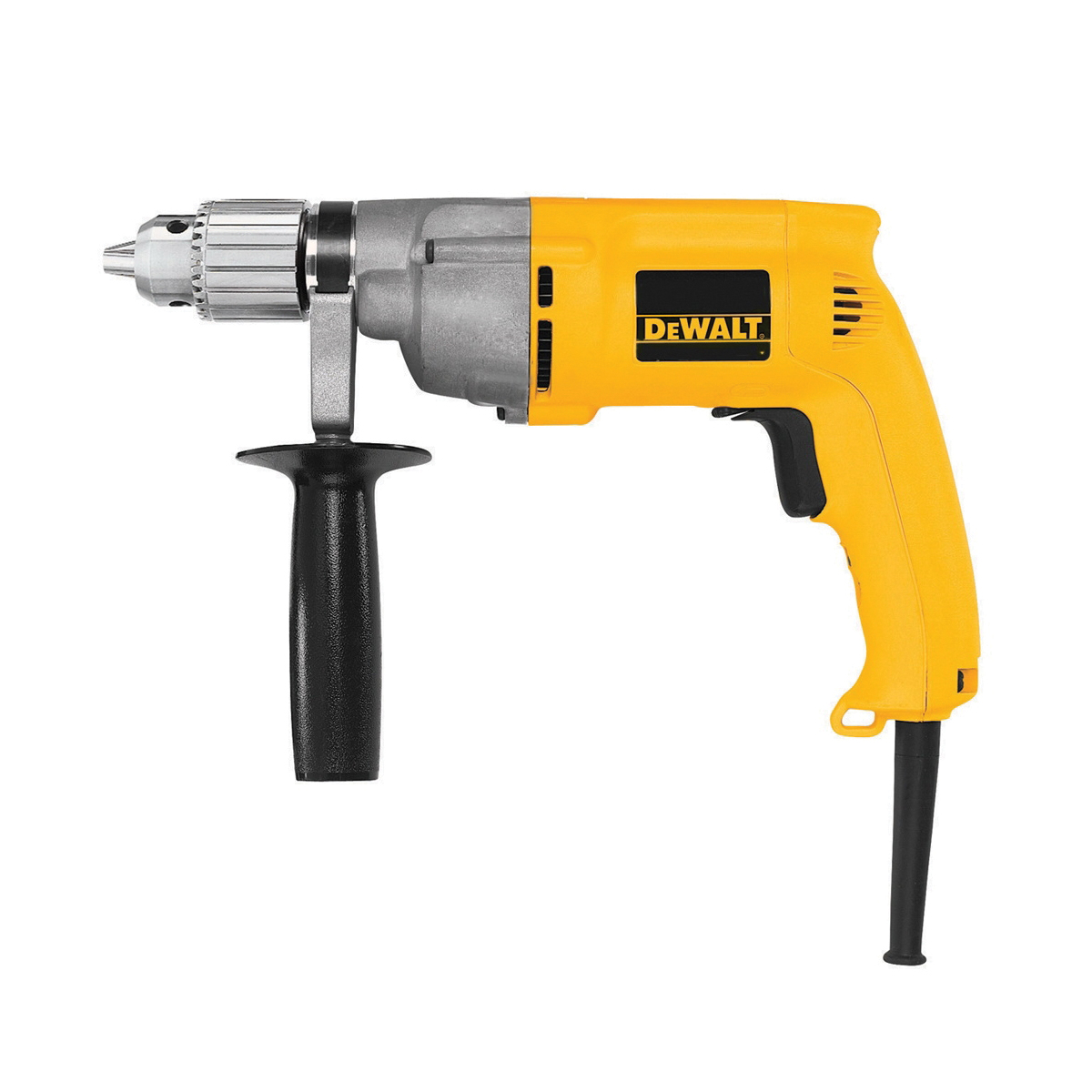 DeWALT VSR Drill, 1/2 in Chuck, Keyed Chuck, 0 to 600 rpm Speed, 1 Speed, 120 VAC, 7.8 A, Metal Housing Material, Pistol Grip Handle, Yellow, VSR Trigger Switch Control, 12-1/4 in Overall Length