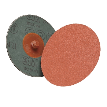 Cubitron II, 7010360665, Fibre Disc, Close Coated, 2 in Diameter Disc, 36+ Grit, Coarse Grade, Ceramic Abrasive, Fiber Backing, Quick-Change Type TR Attachment, Applicable Materials: Cobalt, High Nickel Alloy, Stainless Steel, Titanium and Zirconium, 12000 rpm Maximum, Orange