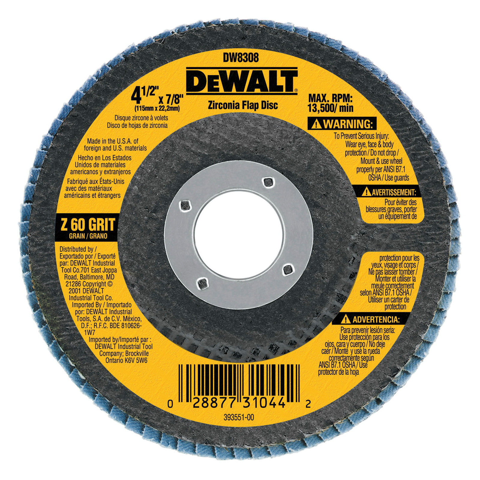 DeWALT High Performance DW8308 Contaminant-Free Flap Disc, 4-1/2 in Dia Disc, 7/8 in Center Hole, 36 Grit, Medium Grade, Zirconia Alumina Abrasive, Type 29 Disc