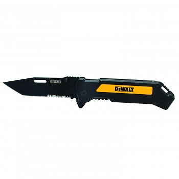 DeWALT Folding Pocket Knife, Liner Lock, 3-1/2 in Blade Length, Tanto Blade, 440A Stainless Steel Blade, Straight/Serrated Edge, Slim Lightweight Handle, 4-1/2 in L Handle, Aluminum Handle, 8 in Open Length, 4-1/2 in Closed Length, Pocket Clip Included: Yes, Sheath Included: No, 7 in L Dimensions