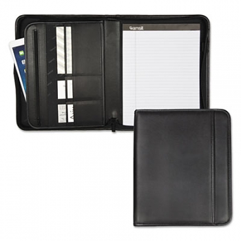 Padded covers look and feel like fine napa leather. Wraparound zipper provides security for important documents and your tablet. Features interior pocket for iPad® and most tablets up to 10 1/10-inches. Full-length exterior storage pocket. Inside expandable document pocket, zipper security compartment, card pockets, pen loop and letter-size writing pad.
