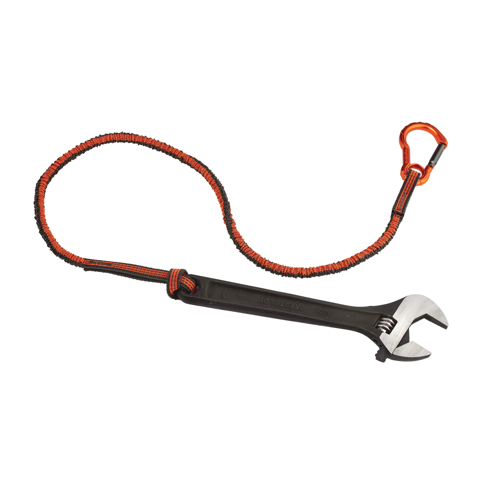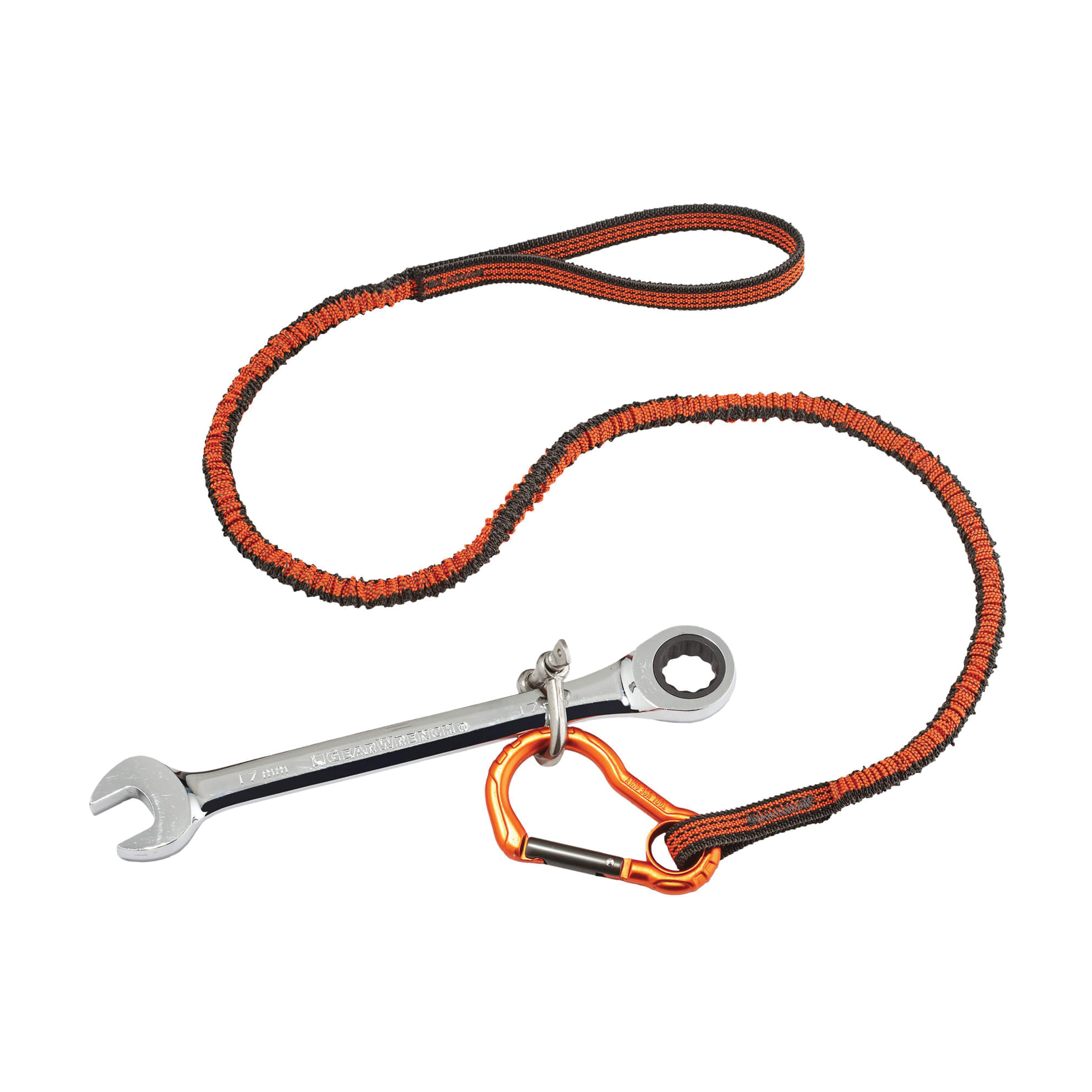 Squids Tool Lanyard, Lightweight Standard, Series: 3100F(x), 38 to 70 in L Extended, 10 lb Capacity, Carabiner Connection, 1680D Polyester Elastic Blended Webbing, Orange/Gray