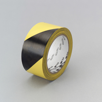 3M™ Hazard Warning Tape, Single Sided, 36 yd Length, 2 in Width, 5 mil Thickness, Rubber Adhesive/Vinyl Backing, Black/Yellow