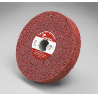 Scotch-Brite, 7100111501, Metal Finishing Wheel, Center Hole Attachment, Aluminum Oxide Abrasive, 6 in Wheel Diameter, 1 in Center Hole, 1 in Face Width, Coarse Grade, 6000 rpm Maximum, Density Grade: Medium, 6 Density, Maroon
