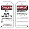 Brady 65407 Rectangular Lockout Tag, 5-3/4 in H x 3 in W, Black/Red on White, 3/8 in Hole, B-853 Cardstock