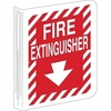 Brady 25718 Rectangular Fire Extinguisher Sign, 10 in H x 7 in W, White on Red, B-401 Polystyrene, Corner Hole/Surface Mount